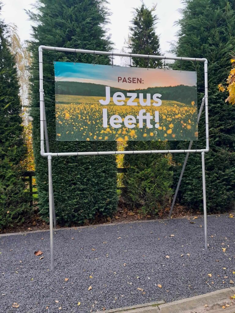 Aluminium frame met beton poeren
